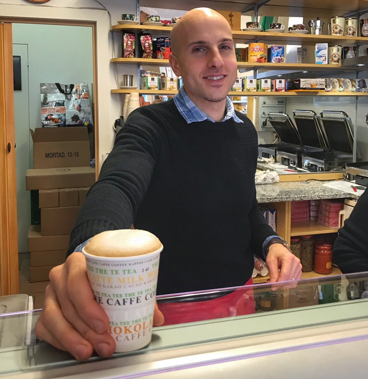 Bei Marco gibts einen ausgezeichneten Cappuccino für sage und schreibe 2.80 Franken. Leider nur zum Mitnehmen. Da ich nicht so gerne aus Pappbecher trinke, hält mich dies davon ab, täglich beim Marco vorbeizuschauen. Manchmal bringe ich allerdings meine eigene Tasse mit.